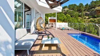 Fraaie villa ontworpen in unieke architectuur gelegen in het exclusieve Altea Hills. Deze ruime villa verdeeld over 3 verdiepingen is uitgerust met 5 slaapkamers en biedt natuurlijke lichtinval, ruime interieurs en een open woonkamer met keuken plus eethoek. Vanaf hier heb je direct toegang tot het ruime terras met chill-out ruimte en privé zwembad. Gebouwd volgens de hoogste normen met comfort en functionele luxe in gedachte, dat tot z’n recht komt in bijvoorbeeld de binnenlift die elke verdieping verbindt.