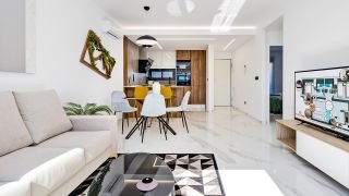 Modern appartement bestaande uit 3 slaap- en 2 badkamers met open woonkamer en keuken die direct toegang bieden tot het terras waar je kunt genieten van een prachtig uitzicht over het landschap en de lagune. De woning is afgewerkt in een delicaat en functioneel ontwerp en combineert perfect het binnen met buiten. Kortom, een moderne en frisse omgeving om je mediterrane dagen door te brengen. Fantastisch volledig gemeubileerde appartementen met absoluut alles inbegrepen om ervoor te zorgen dat je helemaal gesetteld bent!