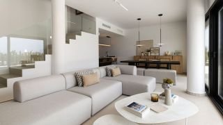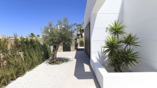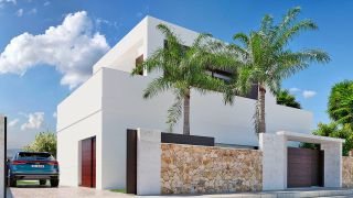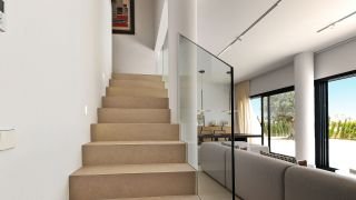 Modern and warm 160m² villa set on the Quesada hilltop overlooking the valley. Designed with distinct personality this unique home consists of 3 bed- and 3 bathrooms with large open-plan living areas. The interior of the villa exposes an elegant neutral color scheme and excellent quality finishes creating bright and airy spaces. The kitchen is completed with designer furnishings and high-end appliances, whereas the master bedroom on the top floor enjoys its own private and ample sunny terrace enjoying amazing views over the valley, golf course and Mediterranean coastline. A home with clean renewable energy in mind, aerothermal centralized airconditioning, heating and floor heating throughout the whole villa, automatic blinds and meer. Finished in the most delicate and functional design, this home offers a modern and fresh setting to spend your Mediterranean days.