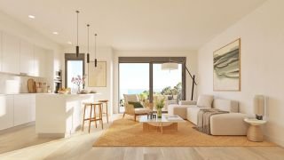 Contemporary beachfront apartment designed in a careful and organic style. Provocative with its undulating shapes, this 2 bed and 2 bathroom apartment of 65m² offers a diaphanous and modern living space with large windows allowing for the inlet of the warm Mediterranean light. Whilst the luminous terrace makes for an ideal space enjoying the sea breeze on relaxing afternoons. Built in durable and top-quality materials with air conditioning, floor heating, double-glazed windows and more, to ensure maximum comfort offering a Mediterranean living at its best.