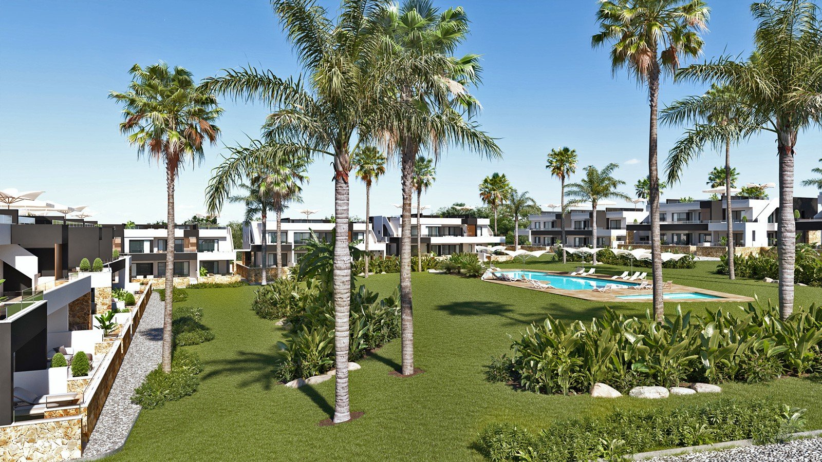 A unique residential complex that offers common areas with a large pool and children’s playground, landscaped gardens with natural grass and palmtrees as well as an underground parking with storage rooms.