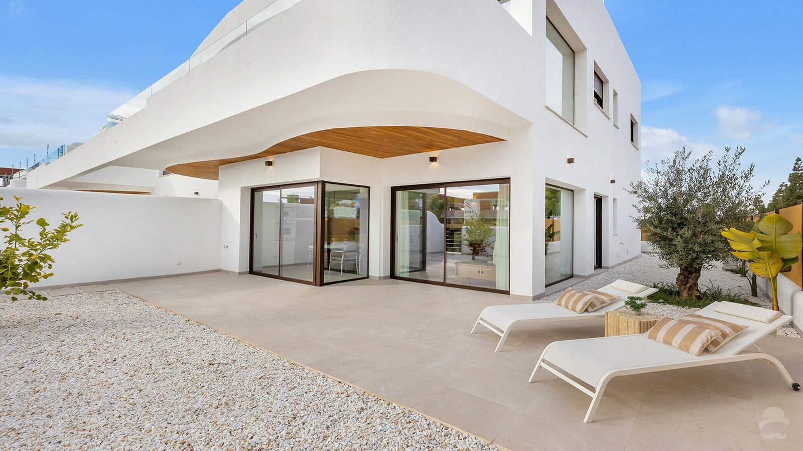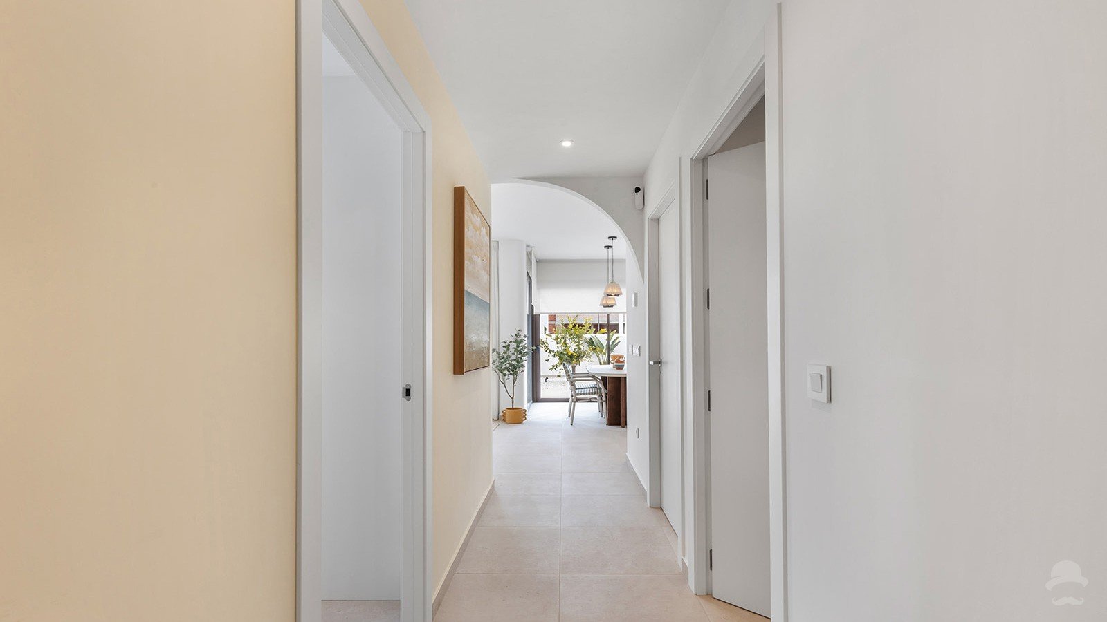 Exclusive ground floor apartment with private garden in the tranquil and scenic surroundings of Los Alcázares on the beautiful Costa Cálida. This bright and airy home features 3 bedrooms and 2 bathrooms. It features a modern open-plan living and dining area with fully equipped kitchen and interior storage room, all designed for effortless Mediterranean living. The generous private garden and sunny terraces offer amazing panoramic views over the golf course, perfect for entertainment or relaxation.
