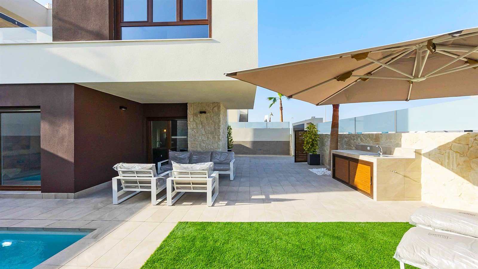 This villa is Key-Ready and comes All-Included with many features such as hot & cold air conditioning through ducts, automatic blinds, interior & exterior lighting, exterior kitchen, a driveway for 2 cars with automatic gate and much more…